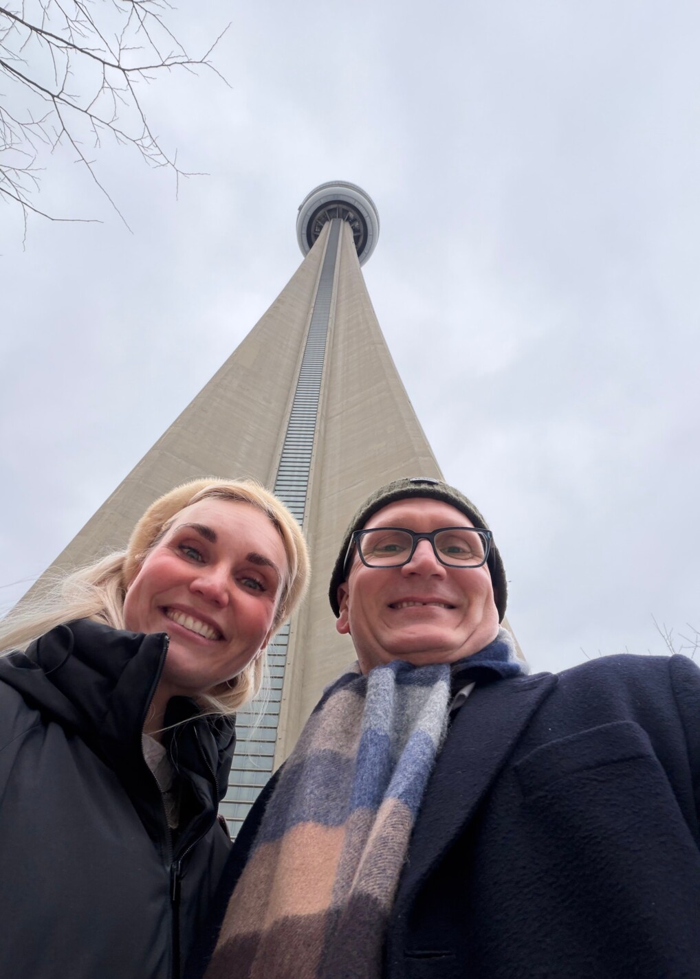 Den danske præst Kirstine Rasmussen og biskop Mads Davidsen foran det berømte CN tower i Toronto